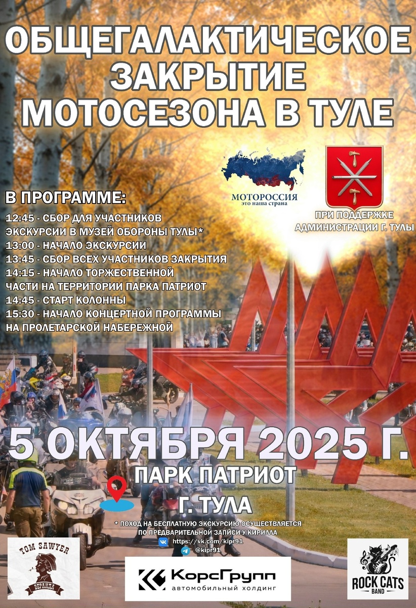 🔁 Дальняк.рф™: Рады представить программу мероприятий на 5 октября! Обращаем Ваше внимание, что запись на бесплатную экскурсию в Музей обороны Тулы обязательно ПРЕДВАРИТЕЛЬНАЯ и происходит у Кирилла. Кафе Tom Sawyer Тула Rock Cats Band