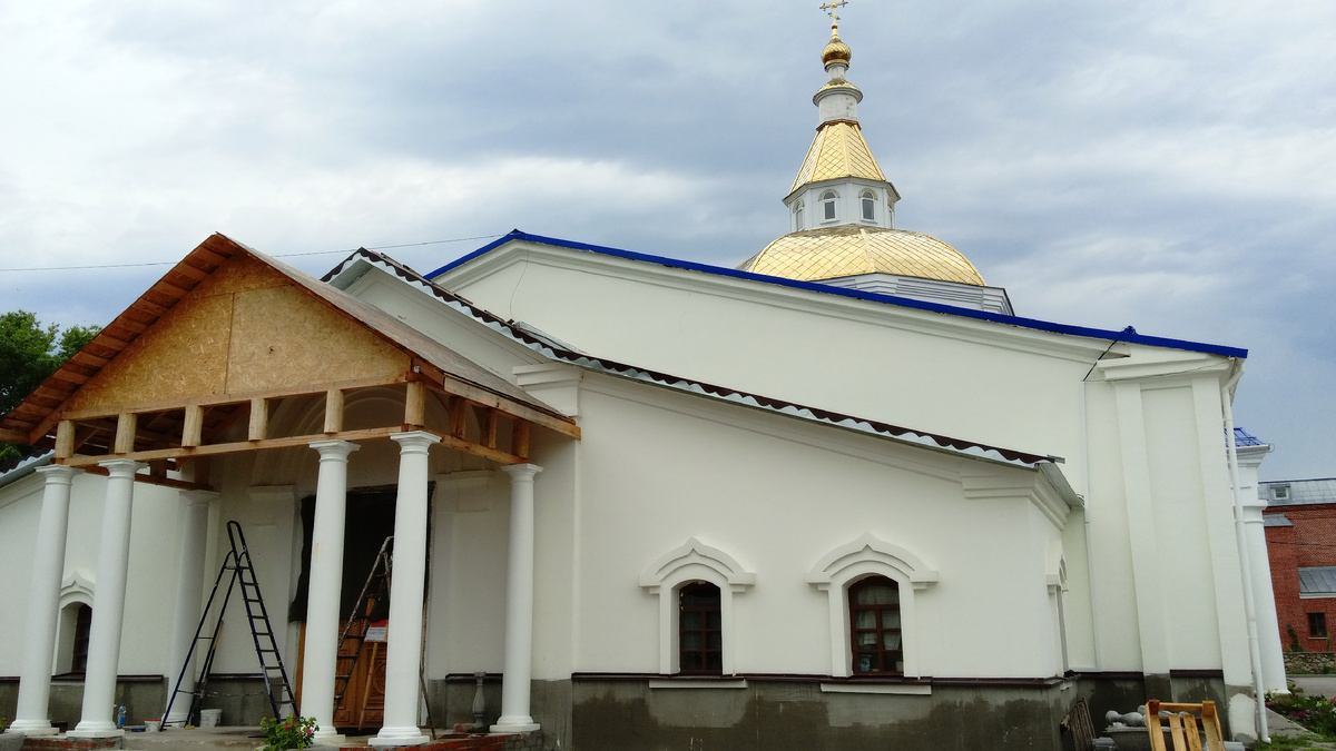 Осенью 2013 года кровлю храма перекрыли, а алтарь выложили.