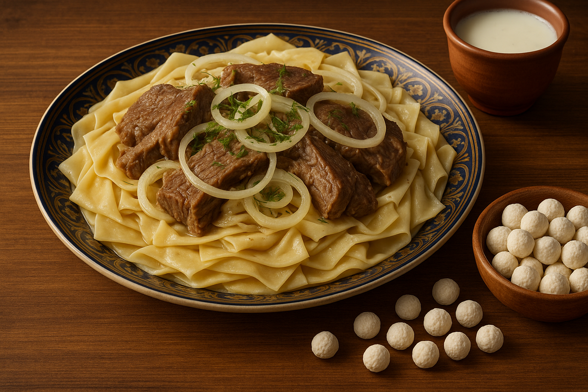 Еда в Кыргызстане — это не просто способ утолить голод. Это язык, на котором народ говорит о своём прошлом, гостеприимстве и единстве. Два блюда особенно ярко отражают киргизскую кухню и традиции — бешбармак и курут. Слово бешбармак буквально переводится как «пять пальцев». Потому что именно так его едят — руками. Перед вами большая тарелка с лапшой, сверху — мясо, обычно баранина или конина, иногда говядина. Всё это щедро полито бульоном, украшено луком и зеленью. Главное в бешбармаке — не только вкус. Это блюдо символизирует единство за одним столом. По традиции, хозяева выкладывают мясо кусками и подают его самым уважаемым гостям. Каждая часть туши имеет своё «назначение»: кому-то — рёбра, кому-то — голову. Это не просто еда, а ритуал уважения. Курут — совсем другое дело. Это крошечные солёные шарики из высушенного кислого молока. С виду — просто закуска. Но на самом деле курут — настоящий символ кочевой жизни. Представьте: пастух уходит в горы на несколько дней, с собой берёт мешо