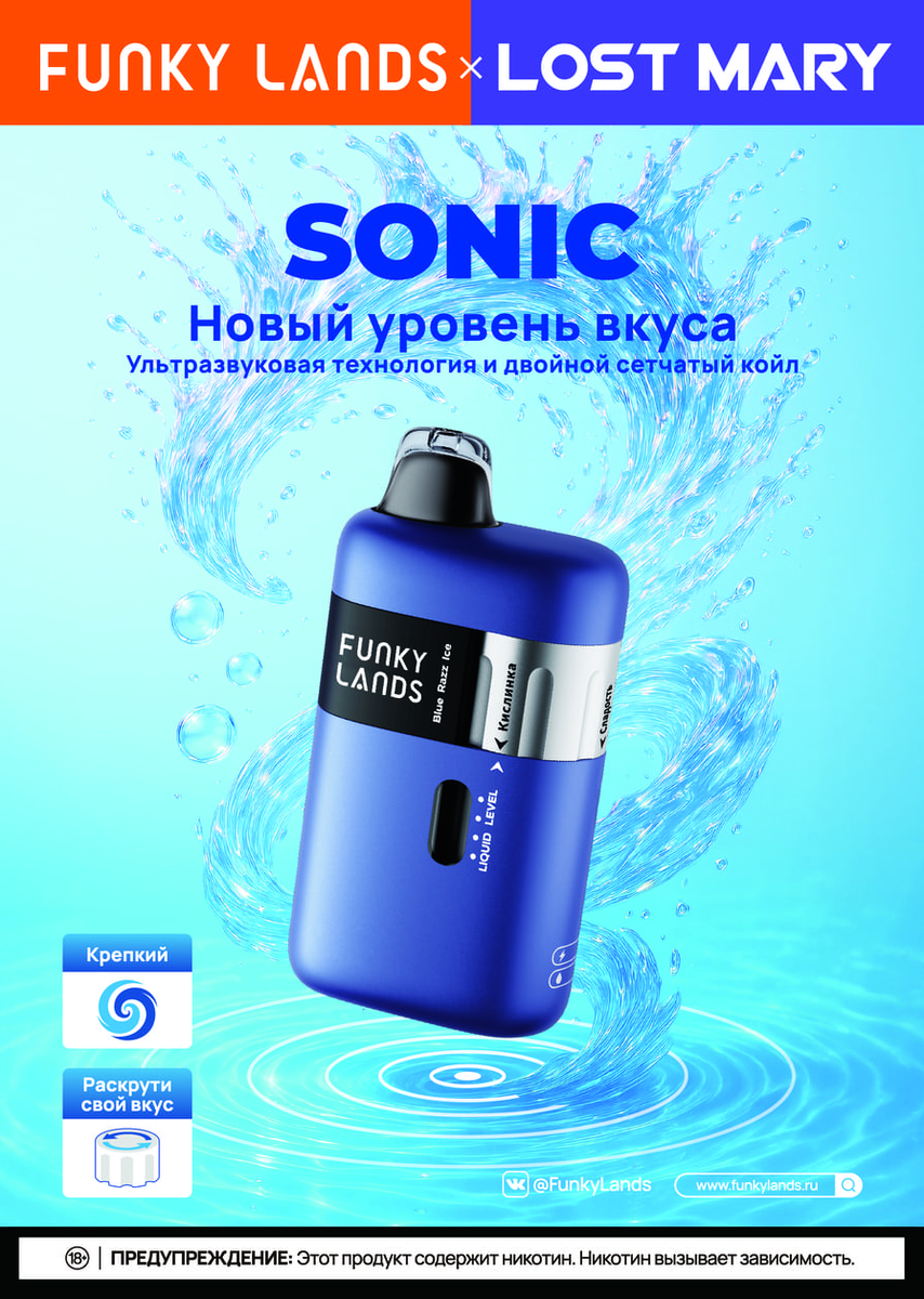 Совместки в мире вейпов случаются нечасто, но если за дело берутся Funky Lands и Lost Mary, результат заранее обречён на внимание. Их Sonic 30000 — это не просто «много затяжек», а попытка показать, каким должен быть современный одноразовый девайс в премиум-сегменте. Девайс крупный, но без перебора. В руке лежит уверенно, корпус матовый, цепляет минимализмом и отсутствием дешёвого блеска. Форма продумана: удобно держать даже при долгом использовании. Type-C решает вечный вопрос автономности. Даже если посадили устройство, полчаса на зарядке — и можно спокойно продолжать. Внутри батарея серьёзная, рассчитана под долгую жизнь устройства. Вот тут Sonic раскрывается на полную. Тяга плотная, вкус насыщенный и не уходит в «мыло» даже после нескольких тысяч затяжек. Технология ароматизации явно отработана: фруктовые миксы бодрые и холодные, десерты мягкие и сбалансированные.
