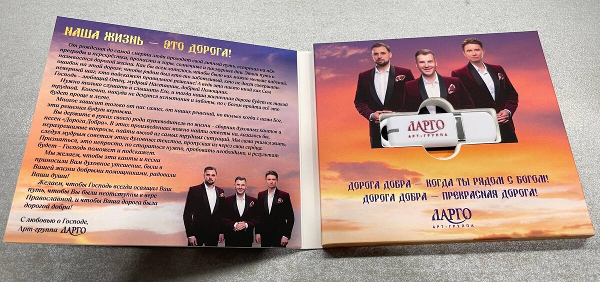 Дорогие! Всего пару дней назад новый сборник «Дорога Добра» вышел в свет, а мы уже получили столько добрых слов! Благодарим всех, кто прислал нам отзывы и, особенно приятно, что этот альбом приобрели паломнические службы различных Епархий! Наши духовные канты и песни будут радовать людей в поездках по православным святыням - это ли не счастье! Слава Богу за Всё! 51 песня , 3 ч. 20 мин. звучания. Очень удобно в дорогу брать с собой. Ссылка на альбом 👇👇👇 https://www.wildberries.ru/catalog/536091342/detail.aspx?size=738524410