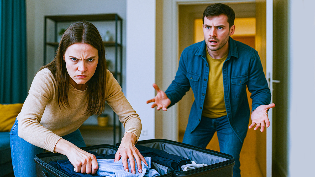 Через час вернулся Андрей. Открыл дверь своими ключами и увидел жену, складывающую его вещи в чемодан.