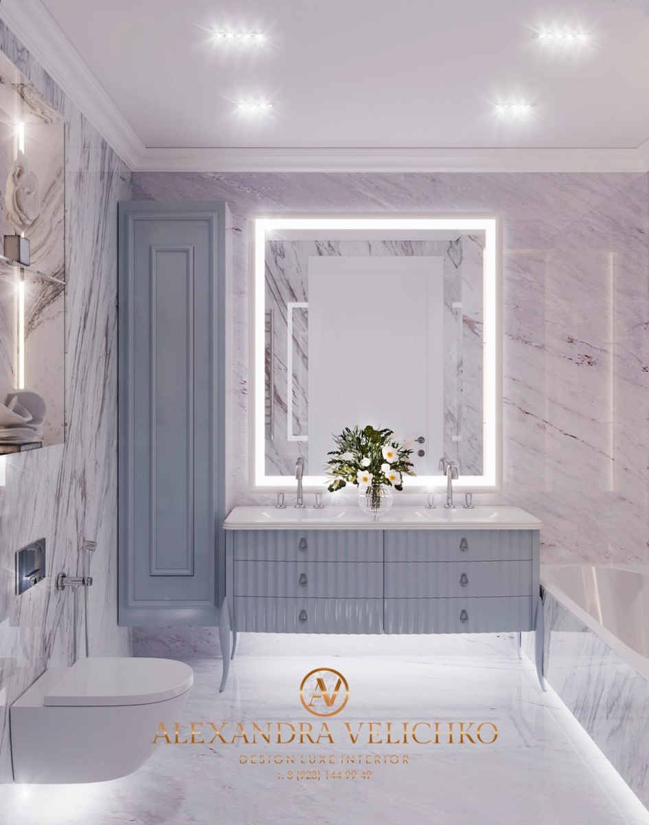 Этот дизайн ванной комнаты покорил многих с первого взгляда! Нежный цвет натурального камня Palissandro, создает глубину и атмосферу умиротворения!