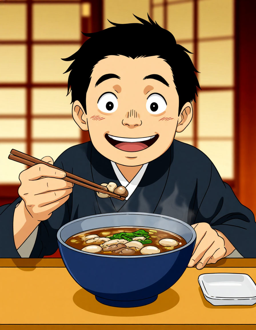 *из рассказов местных жителей. Подборка и перевод - мой. В одном городе жил мужчина, который не был женат. Однажды к нему приехала прекрасная девушка, и они решили пожениться. Мужчина уходил на работу каждое утро и возвращался вечером. С появлением невесты его блюда стали гораздо вкуснее. Фасолевый суп, который он раньше готовил, теперь был просто великолепным. Мужчина не мог понять, как его невесте удаётся готовить такой суп. Однажды он решил проследить за ней. Он спрятался за домом и увидел, как она готовит. Невеста взяла глиняную миску, положила в неё кусочки бобовой пасты и начала их растирать. Когда масса стала однородной, она раздвинула ноги и помочилась в миску. Мужчина был в ярости и сразу же прогнал её. Невеста попыталась извиниться, но он не простил её. Тогда она превратилась в большого моллюска и начала медленно удаляться. Секрет вкусного фасолевого супа был в том, что в него добавлялся сок моллюсков. Мукаяма Масашиге. Камиина-гун, Нагано.