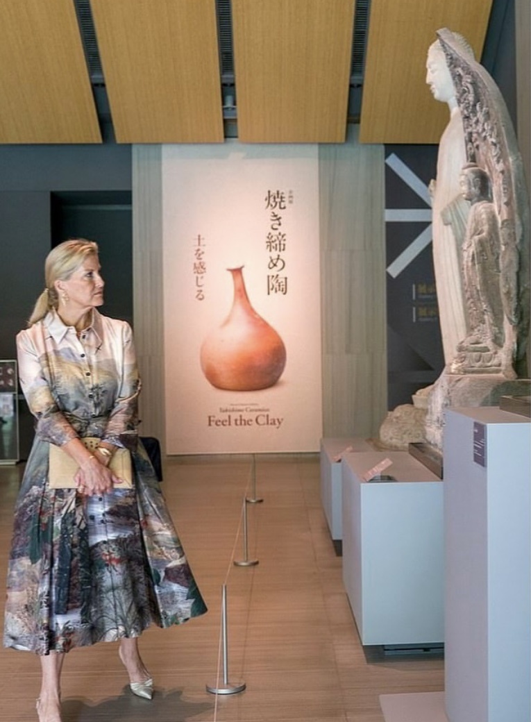 Софи Эдинбургская уже почти неделю проводит в Японии. Встречи, выступления, поклоны императорской семье.Она сопровождает мужа, принца Эдварда и они имеют большую программу. Их Королевские Высочества провели немало времени на выставочных павильонах Экспо, а также посетили павильон Японии, где их экскурсию провели генеральный комиссар г-н Ханэда и директор павильона Нориюки Курода. Тема павильона – «Между жизнями» – раскрывает цикл жизни. Позднее герцогиня Эдинбургская приняла участие в панельной дискуссии структуры «ООН-женщины» в Женском павильоне и встретилась с Ее Императорским Высочеством принцессой Такамадо во время визита на Osaka Expo 2025 в Осаке. Наряды японских принцесс всегда подчеркнуто вневременные. А вот Софи выбрала непринужденный летний стиль уровня Resort. Скажу честно, я не люблю эспадрильи на официальных мероприятиях, но герцогиня их упорно носит. Итак, какие наряды мне показались интересными , подчеркивающими ее всегда не слишком формальный вид? Вчерашний о