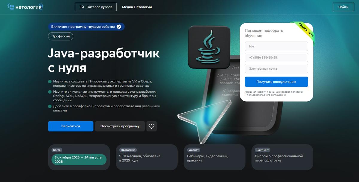 Нетология — «Java-разработчик с нуля»