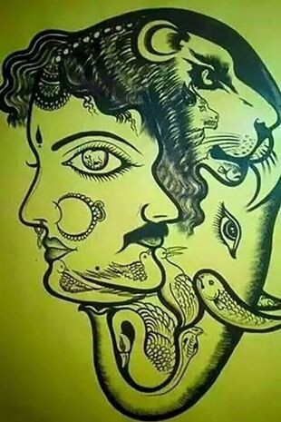 Итак, примите вызов! Перед вами загадочная картинка, словно сотканная из переплетенных лиц и фигур на изумрудно-зеленом фоне. На первый взгляд, заметить слона и льва – легко. Но где же остальные 9 животных?