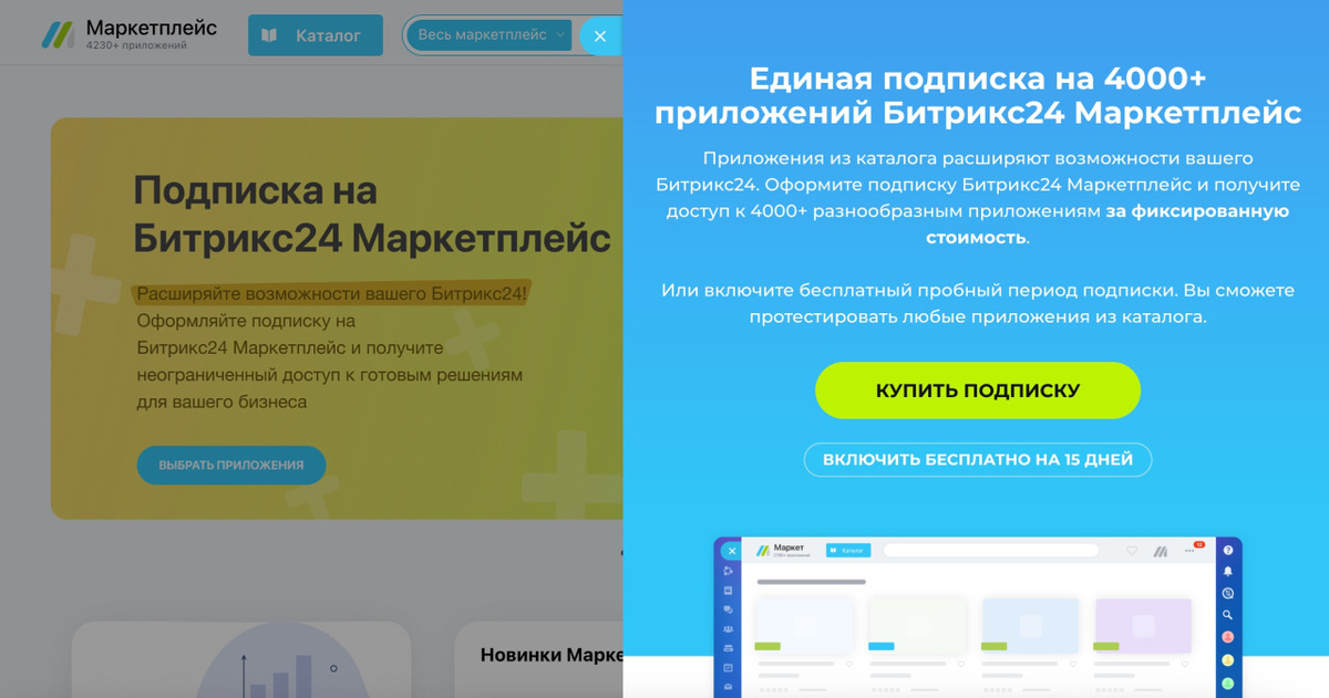 3. Быстрый старт: готовые шаблоны сайтов, отраслевые CRM Подписка — это способ масштабировать работу в Битрикс24 и закрыть задачи, которых нет в стандартном функционале. Однако, если вам не нужно всё вышеперечисленное, можно сэкономить и не приобретать подписку на Маркетплейс. Подписка на Битрикс24 Маркетплейс даёт гибкость и доступ к мощным инструментам. У нас есть список полезных приложений, которые повысят эффективность вашего бизнеса. Свяжи