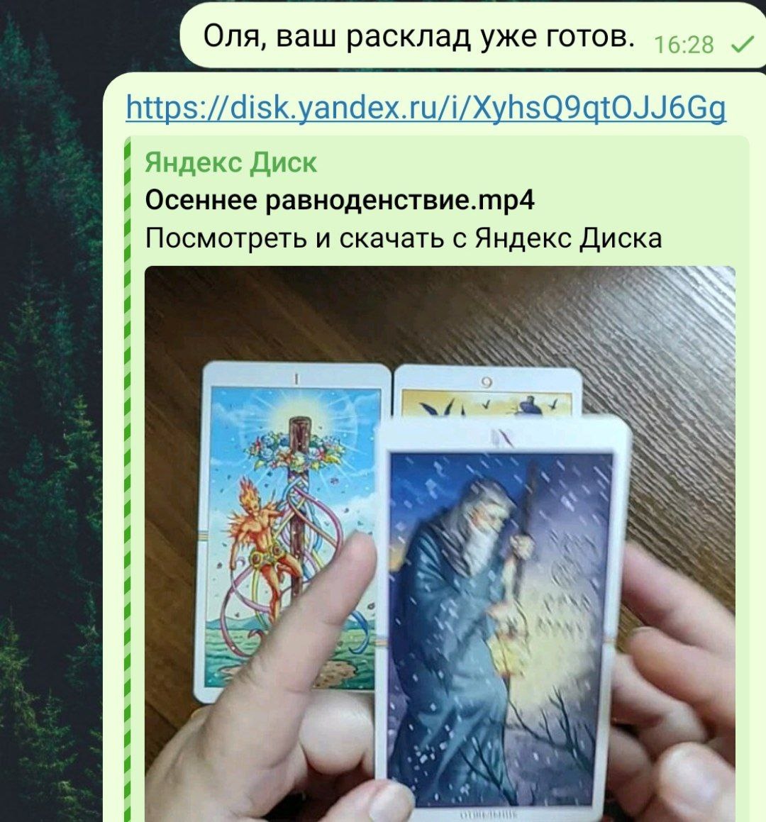 Первое видео расклада уже у клиентки. Посмотрела, как у неё пройдёт период до 21 декабря. Советы и рекомендации дала. Пользуюсь тем, что сегодня самый сильный день для такой работы. Но ещё дня 3 есть спокойно на расклады по осеннему равноденствию.