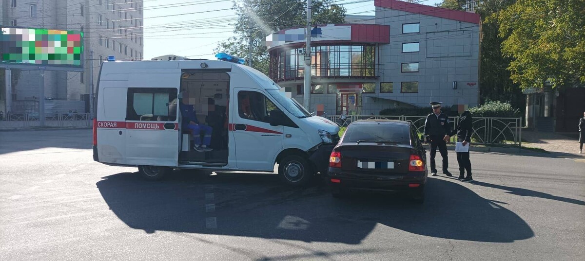Карета скорой помощи и «Приора» столкнулись на перекрёстке в Ставрополе