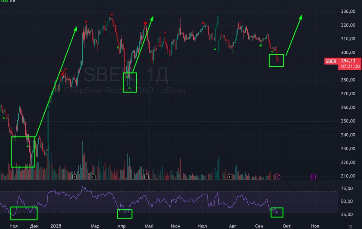 π¦ #Π‘Π±Π΅ΡΠ±Π°Π½ΠΊ #Π‘ΠΠΠ $SBER #bogdanoffinvest π’ ΠΠ° Π΄Π½Π΅Π²Π½ΠΎΠΌ ΡΠ°ΠΉΠΌ-ΡΡΠ΅ΠΉΠΌΠ΅ ΠΏΡΠΈΡΠ»ΠΈ Π² Π·ΠΎΠ½Ρ ΠΏΠ΅ΡΠ΅ΠΏΡΠΎΠ΄Π°Π½Π½ΠΎΡΡΠΈ. Π ΠΏΡΠΎΡΠ»ΡΠ΅ Π΄Π²Π° ΡΠ°Π·Π° ΠΈΠ· ΡΡΠΎΠΉ Π·ΠΎΠ½Ρ Π±ΡΠ» ΡΠΈΠ»ΡΠ½ΡΠΉ Π²ΡΠΊΡΠΏ Π‘Π±Π΅ΡΠ°. ΠΡΠ°Π²Π΄Π° ΠΎΠ½ ΡΠΎΠΏΡΠΎΠ²ΠΎΠΆΠ΄Π°Π»ΡΡ ΡΠΈΠ³Π½Π°Π»Π°ΠΌΠΈ Π½Π° ΠΏΠΎΠΊΡΠΏΠΊΡ ΠΈ ΠΊΠΎΠ½Π²Π΅ΡΠ³Π΅Π½ΡΠΈΡΠΌΠΈ. Π Π½Π°ΡΡΠΎΡΡΠΈΠΉ ΠΌΠΎΠΌΠ΅Π½Ρ Ρ Π½Π°Ρ ΡΠ°ΠΊΠΈΡ