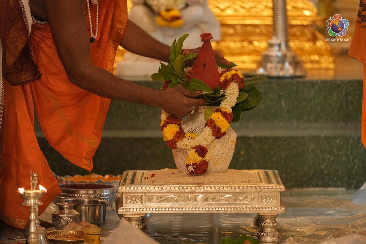 Пуджа Деви Наваратри начинается в Прашанти Нилаям со священной Калаша Стхапана и Кумкум Арчана