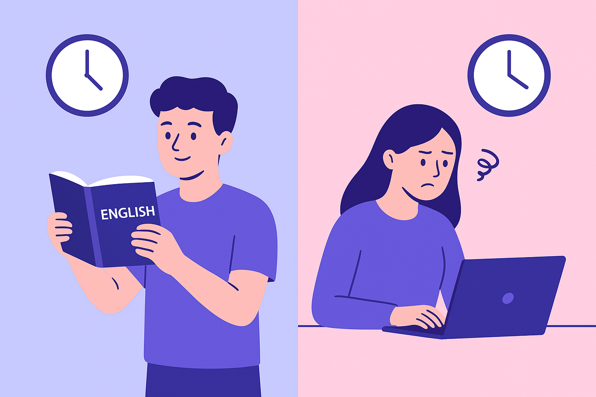 Очень часто люди говорят: «Сейчас некогда, займусь английским через месяц, через год, после отпуска или когда будет больше свободного времени». Но в итоге проходит не месяц и не год, а несколько лет, а результат остаётся прежним — язык так и не выучен. У большинства людей не бывает момента, когда всё свободно и ничего не мешает. Если ждать такой ситуации, можно откладывать бесконечно. Если вы уже немного учили английский, но сделали паузу, знания начинают «стекать сквозь пальцы». В итоге приходится начинать почти заново. Чем раньше вы начнёте говорить, пусть с ошибками, тем быстрее почувствуете уверенность. Даже несколько месяцев занятий дают ощутимый прогресс, который вдохновляет двигаться дальше. Можно думать, что язык пригодится «потом», но он нужен уже сегодня — для работы, путешествий, общения, поиска информации. Чем дольше откладывать, тем дольше остаются закрытыми все эти двери. Вывод: