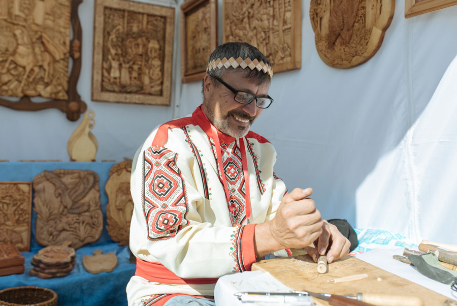 Пётр Першин из Республики Мордовия приезжает на фестиваль третий год подряд. Заслуженный работник культуры и заслуженный учитель Республики Мордовия, он преподаёт резьбу в Ичалковской детской школе искусств.