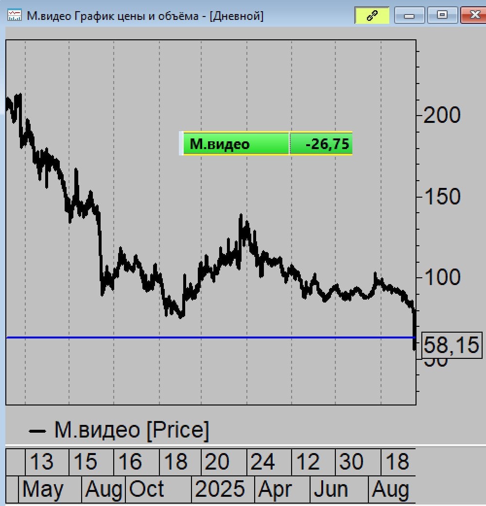 Инвесторы распродают акции «М.Видео» на сообщении о том, что компания планирует разместить 1,5 млрд акций. Стоимость бумаг группы на торгах в понедельник упала более чем на 21% (на момент когда скидываю уже -27%) ☝️Новость из разряда, допки этого года 😂 Мвидео уже давно полумёртвая компания...