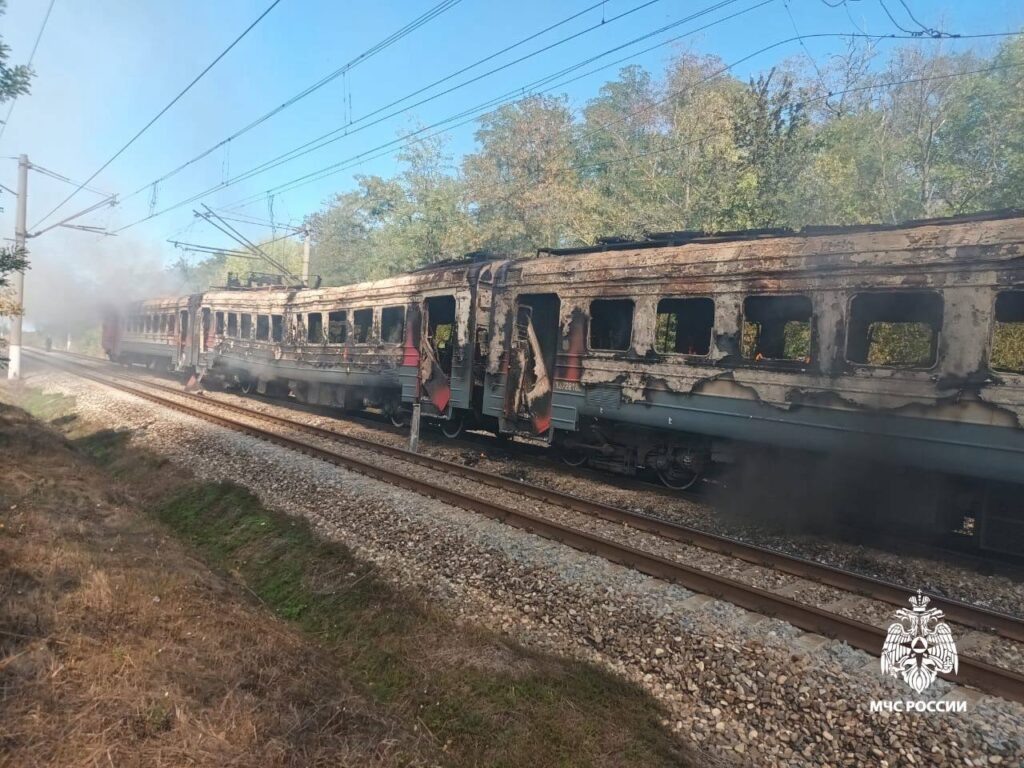 МЧС опубликовало кадры сгоревшего электропоезда в Каневском районе