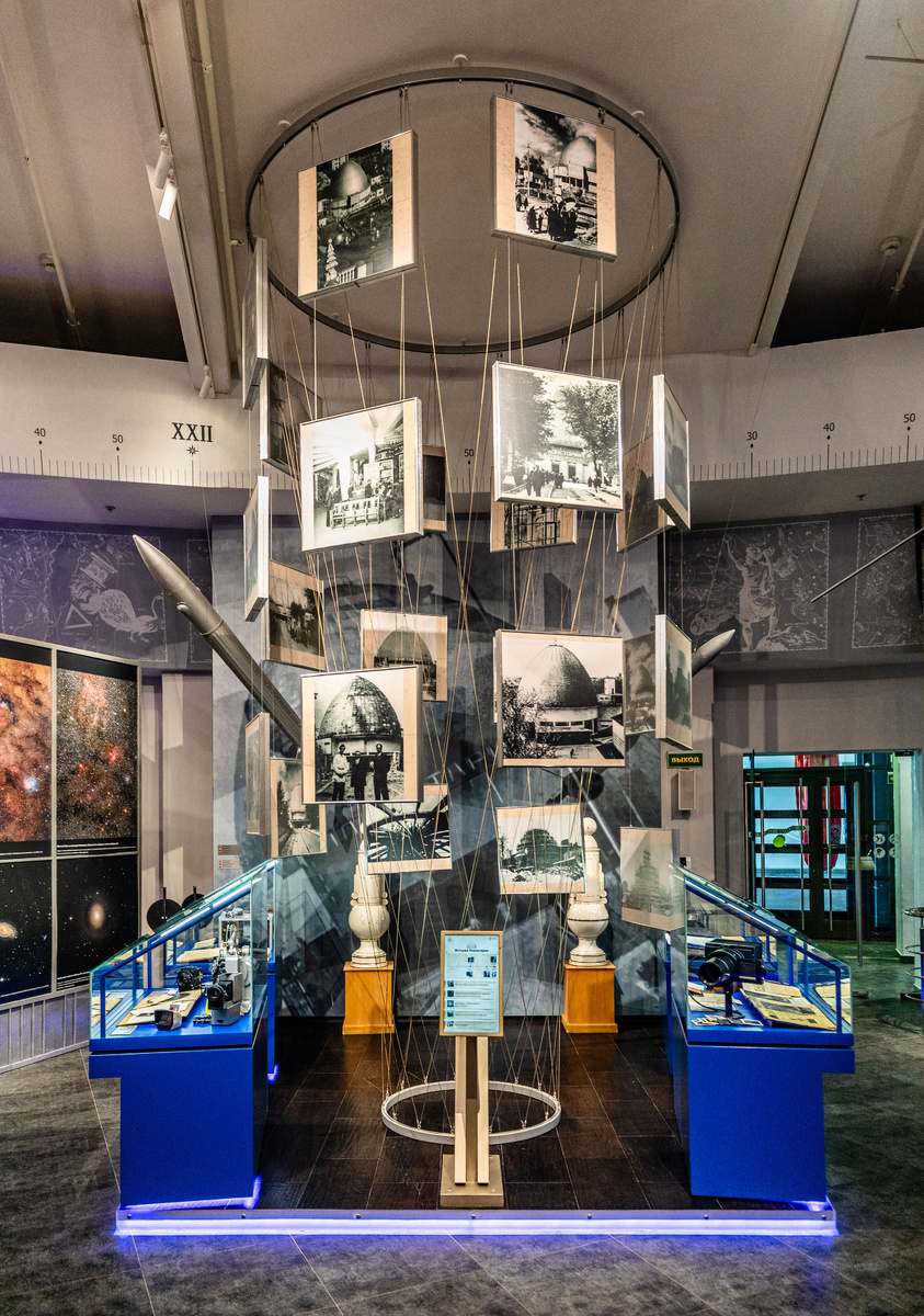 Справа от входа в нижний зал Урании расположена экспозиция «Спираль времени», которая представляет исторический раздел музея. В нее входят: большие исторические фотографии, образующие символическую «спираль времени», модели первых ракет, созданных в 1930-х годах Группой изучения реактивного движения (ГИРД), информационный киоск и четыре стеклянные витрины с печатными изданиями, архивными документами и предметами оборудования. В 1927 году Московским Советом было принято решение о строительстве планетария в Москве, а 23 сентября 1928 года, в день осеннего равноденствия, был заложен первый камень в его фундамент. Фотографии рассказывают о возведении на Садово-Кудринской улице необычного здания с куполообразной крышей. Первый в СССР «звёздный дом» создавался по проекту молодых архитекторов Михаила Барща и Михаила Синявского в стиле конструктивизма. 5 ноября 1929 года состоялось торжественное открытие Московского планетария, и этот день считается его днем рождения. В четырех стеклянных витр