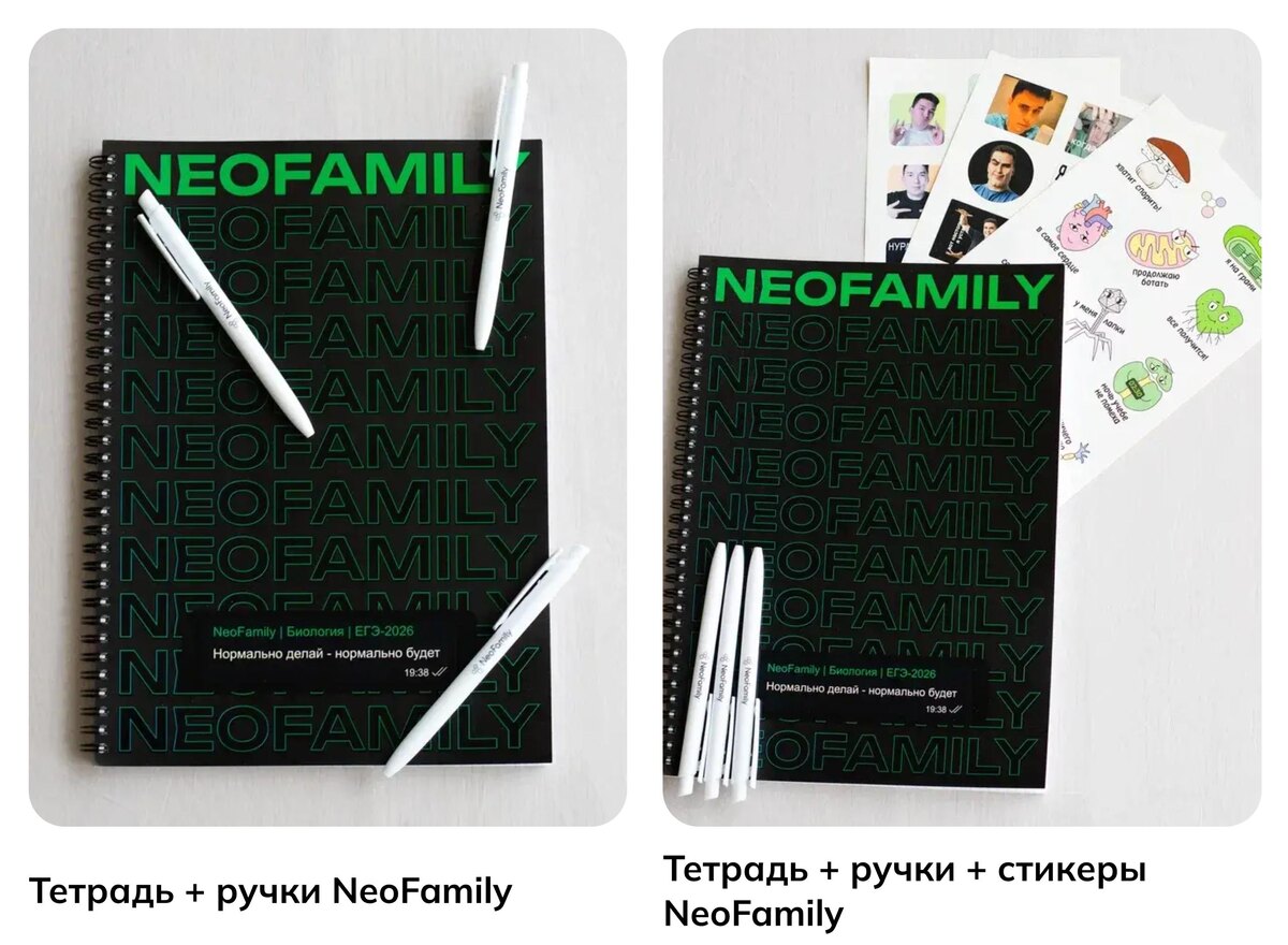 Котятки, а у нас вышел мерч ❤️ Сейчас в магазине доступны: — тетрадь А4 на пружине, 96 листов — синие ручки (комплект по 3) — забавные стикеры (Андрей + Нурлан + персонажи из биологии) — учебные стикеры по цитологии (для годового) — футболка унисекс! 🕺 Витрина на нашем сайте, заказ по ссылкам через озон/вб: https://neofam.online/merch