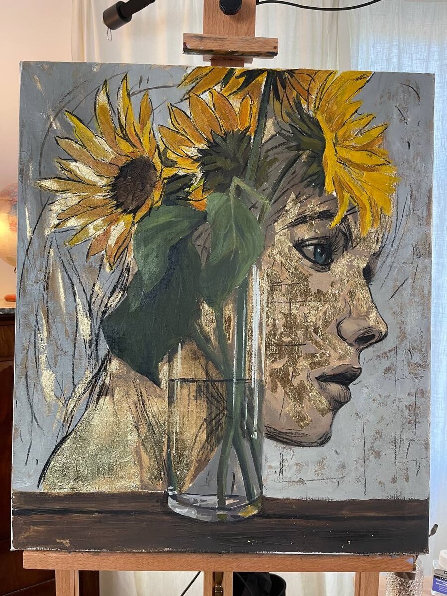 Завершил курс «воспоминание лета» . Две современные работы в которых переплетаются натюрморт и портрет. Яркая пастозная работа с пионами и натюрморт с подсолнухами где использовал текстурную пасту, золотую поталь и древесный уголь. Отличный набор знаний!