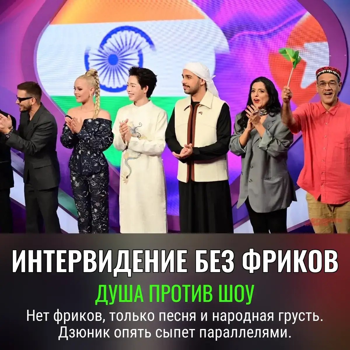 Интервидение — музыкальный конкурс для тех, кому надоела толпа «фриков» на Евровидении. Продюсер Дзюник уверяет: здесь всё чинно-благородно, артисты передают не эпатаж, а глубину души народа. Даже Саудовская Аравия умудрилась кого-то прислать, и, шепотом, никто не любит блеск и перья так, как миссис из Киргизии. 🥇 Победу празднует Вьетнам; Европа тихо рыдает в углу, не понимая, как можно радоваться без латекса и неону. "Все было изумительно и восхитительно!" — говорит Дзюник, будто комментирует финал Чемпионата мира., Следите за новостями 📩