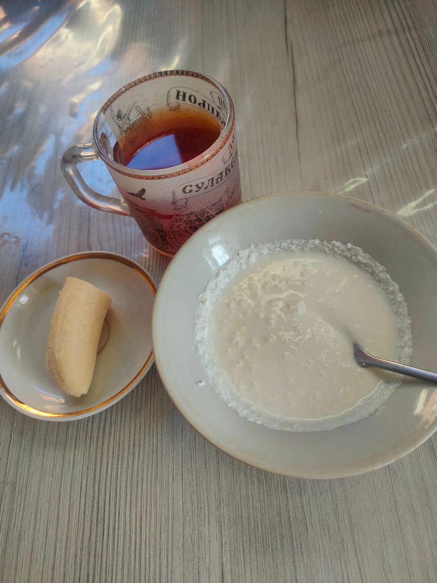 Добрый день, мои подписчики и гости моего канала. Пусть этот день будет хорошим, на предыдущий не похожим. И пусть начнется полоса удачных дней, любви, добра! Я рада вас видеть на своем канале, где я показываю меню на день. Встала сегодня по будильнику в 06.40. К 09.00 приедет сын, поедем опять на перевязку, а потом надо еще сходить к терапевту. До обеда времени нет совершенно. Завтрак мужа - творог, который развела до жидкой консистенции кипяченой водой, кусочек банана и отвар шиповника. Съел все. У меня на завтрак были фаршированные блинчики с начинкой из вареного яйца со сливочным маслом из заморозки + кусочки болгарского перца. А также заварила черный растворимый кофе, кофе пила с шоколадной конфетой Гламур и ломтиками твердого сыра. Домой вернулись уже в начале второго, сегодня в медпункте было что - то, больные все шли и шли, все по талонам. Никто не пропускал, едва высидел, сейчас на перевязку будем ходить редко, буду делать только дома. А на пятницу взяли направление на кров