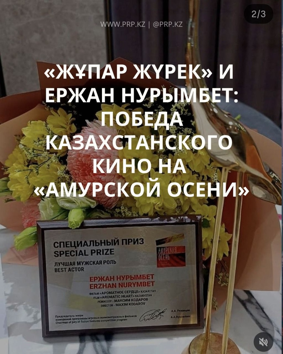 🎬 На XXIII Международном кино- и театральном фестивале «Амурская осень» казахстанский актёр Ержан Нурымбет получил награду за «Лучший образ мужчины» 🎭 — за главную роль в психологической драме «Жұпар жүрек» («Ароматное сердце») режиссёра Максима Кодарова. Фильм рассказывает историю Самата, бывшего заключённого, который после пересадки сердца переживает глубокую внутреннюю трансформацию. Эта работа стала важным шагом в продвижении казахстанского кино на мировых фестивалях. 🌍 В конкурсе участвовали фильмы из 14 стран, а вместе с казахстанской картиной награды получили режиссёры и актёры из Китая, Тайваня, Кыргызстана, Ирана и Аргентины. 📌 «Жұпар жүрек» — доказательство того, что национальное кино Казахстана может говорить универсальным языком, который понятен и близок зрителям разных культур. ➡️ PRP.KZ