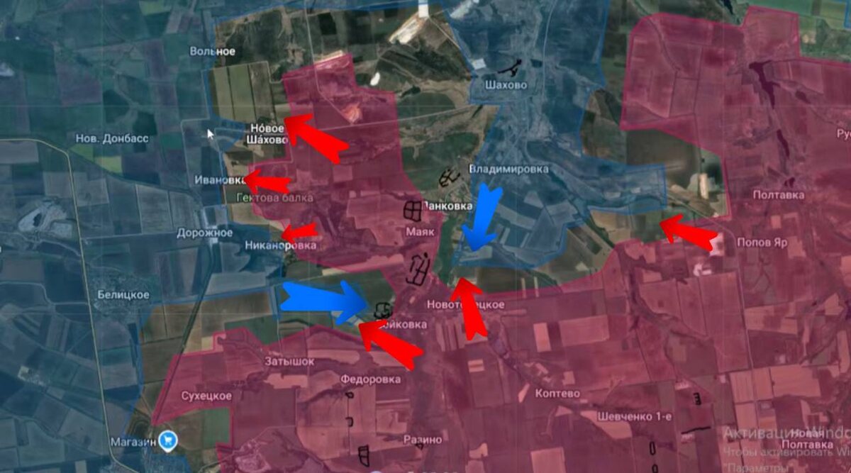 🔻 Российские подразделения наносят удары из района Попов Яра в направлении Владимировки; оттуда противник совершает попытки контратаковать.