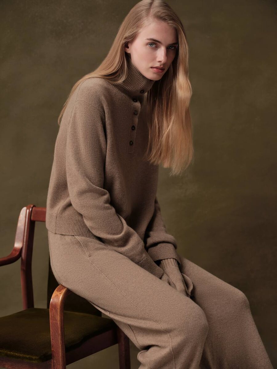 Костюм Grandpa’s из кашемира Мы связали его в две нити из нежной, пушистой пряжи кашмирских коз. Воротник можно регулировать с помощью пуговиц, меняя образ в течение дня. Легкие укороченные брюки удобно носить с высокими ботинками, а с помощью замшевого шнурка на поясе — фиксировать посадку Больше изделий из кашемира ищите на сайте, в приложении и магазинах 12 STOREEZ 🤍12 STOREEZ