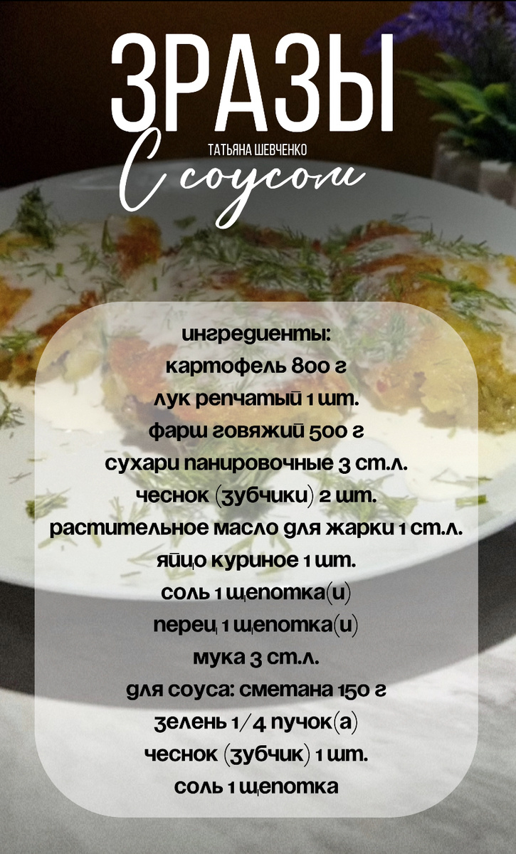 Нежные картофельные котлеты с сочной мясной начинкой и ароматным чесночным соусом. Это блюдо идеально подходит для семейного ужина и порадует всех домочадцев своей домашней простотой и насыщенным вкусом. 📌Ингредиенты : Для картофельной основы: Картофель — 800 гр Яйцо куриное — 1 шт. Мука — 3 ст.л. Соль — щепотка Перец черный молотый — щепотка Для начинки: Фарш говяжий — 500 гр Лук репчатый — 1 шт. Чеснок — 2 зубчика Сухари панировочные — 3 ст.л. Масло растительное — 1 ст.л. Соль — по вкусу Перец — по вкусу Для соуса: Сметана — 150 гр Зелень укропа — ¼ пучка Чеснок — 1 зубчик Соль — щепотка 📌Приготовление: ✔️Приготовление картофельной массы Картофель отварите в мундире до готовности. Очистите и натрите на крупной терке. Добавьте яйцо, соль, перец и муку. Тщательно перемешайте. ✔️Приготовление начинки Лук мелко нарежьте, обжарьте на растительном масле до золотистого цвета. Добавьте сухари, обжаривайте 1-2 минуты. Добавьте фарш, измельченный чеснок, соль и перец. Готовьте до го
