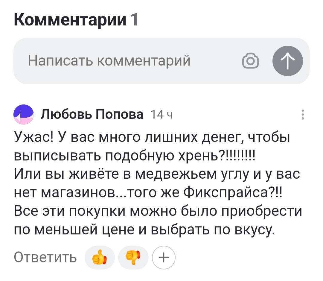 В моих предыдущих статьях я выставила распаковку товаров с Джум. И вот какой мне пришёл комментарий, на который мне очень хотелось ответить. Но ответить в двух словах на этот комментарий невозможно, поэтому я решила просто ответить статьёй. Комментарий довольно-таки философский. Я хотела просто ответить Любови под её высказыванием. Но так просто не ответишь, ответ может получится слишком длинный, поэтому решила ответить статьёй. Надеюсь она прочитает ответ на свои вопросы. Вообще, я думаю, у нас каждый волен покупать товары, где он хочет, где есть возможность, ну и конечно же, насколько у него хватает средств покупать тот или иной товар. Вот ответ на первый вопрос, хватает ли у меня денег покупать всякую хр ень. Я бы сказала-хватает, раз покупаю, тем более за всю эту ..... я отдала не так уж и много денег, я бы сказала что обошлась мелочью. Живу ли я в медвежьем углу-незнаю, если город Новосибирск-медвежий угол, то значить -да. Есть ли у нас магазины? Магазинов в нашем медвежьем углу