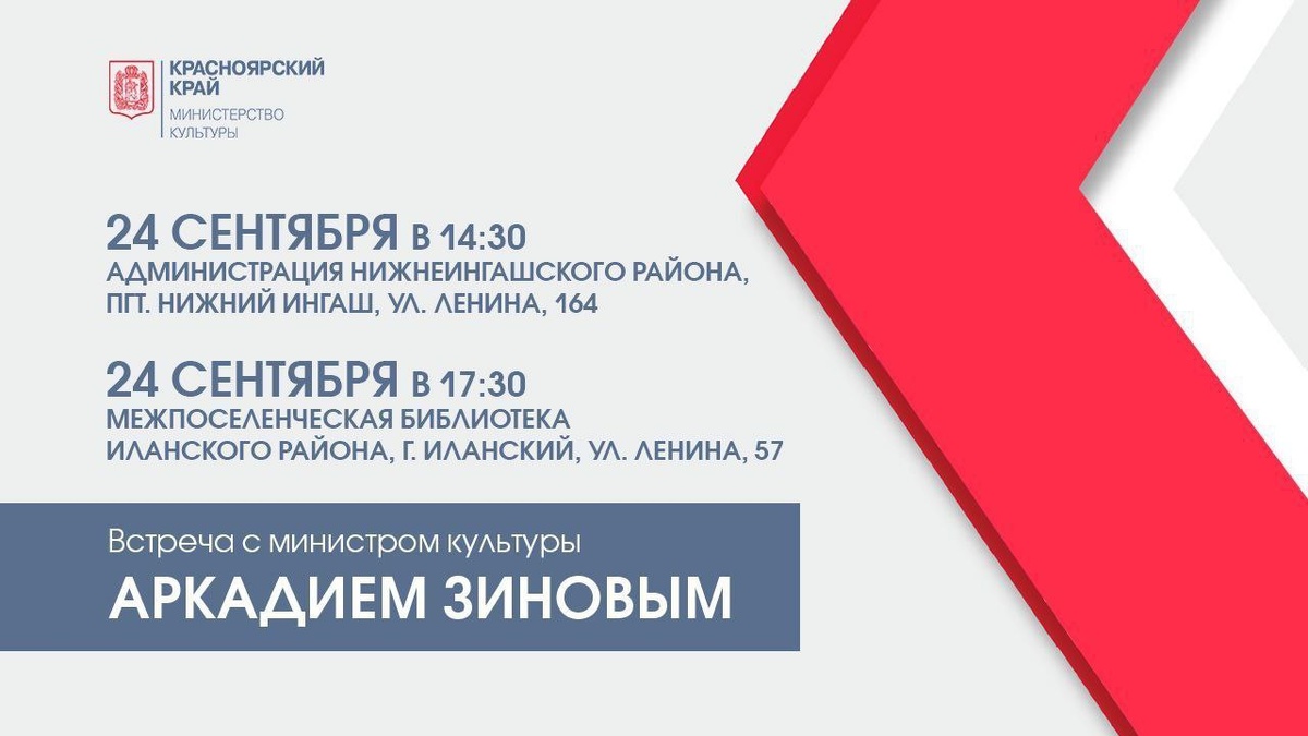 📌 Министр культуры Красноярского края приедет в Нижнеингашский район!