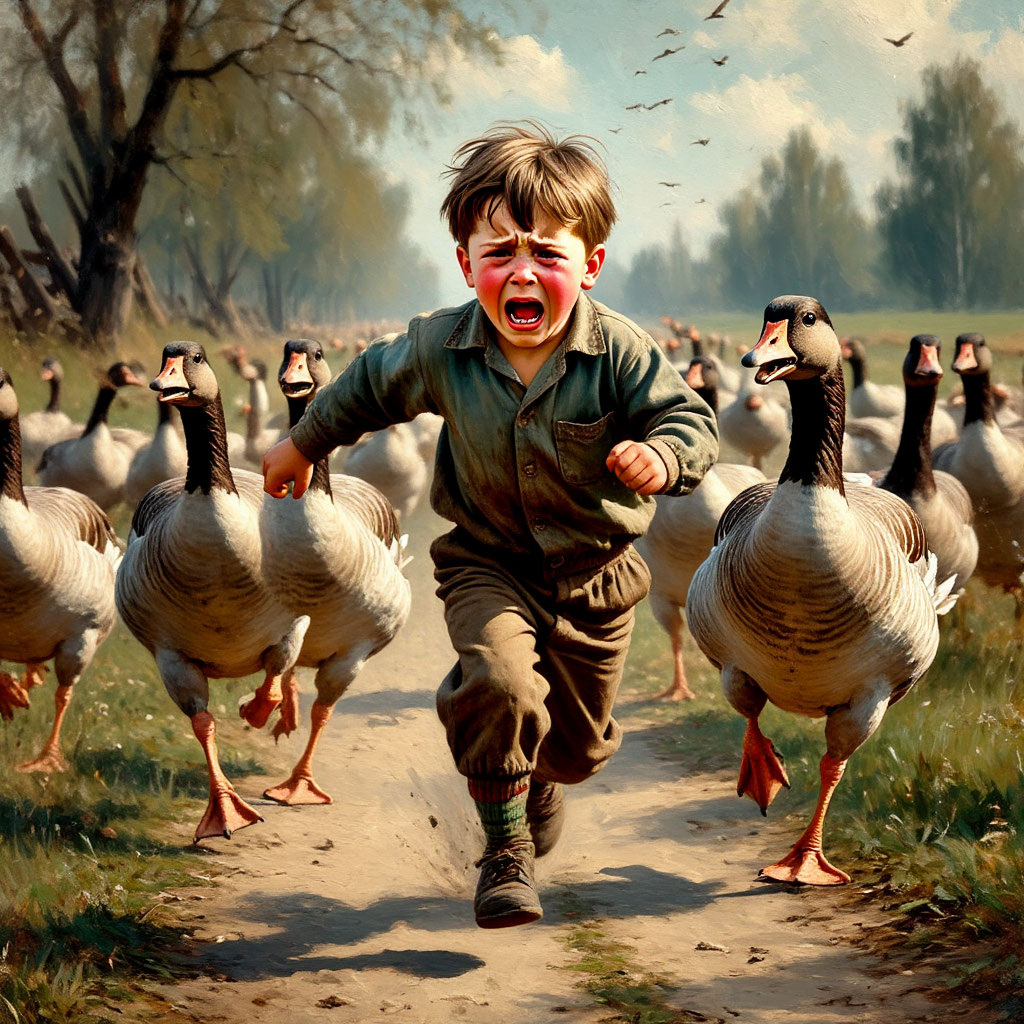 Это ей соседи насоветовали - мол по осени гусей забьешь, да свези на базар. За них хорошую цену дают, будет подспорье собрать детей в школу. Однако гуси оказались птицами капризными. Шура улыбнулась, вспомнив, что особенно не ладил с ними Вовка, младший из сыновей. Более бойкого Сашку гуси сторонились, побаивались. Но едва завидев Вовку, вытягивали свои длинные шеи и норовили ущипнуть мальчугана за, пока еще, пухлую попку. Вовка ревел, прятался за спины старших сестер, отважно вступавшихся за брата. Туго ему приходилось, когда девочки уезжали в школу. Старший брат Сашка, озорник, лишь покатывался со смеху, глядя как Вовка с криком убегает от гусей, а те, раскрылившись, несутся за испуганным мальчишкой. На крики выбегала Шура, бросив все свои дела. Отгоняла гусей, прижимала к себе Вовку, ругалась на Сашку. Несколько раз даже бралась за хворостину, пытаясь заставить Сашку заступаться за брата. Она всерьез опасалась, что Вовка совсем перестанет выходить на улицу или станет заикаться. Он уже и сейчас выходил из дома с опаской или в сопровождении взрослых. На Сашку материнские увещевания действовали мало. Продолжая хохотать, он бросался на гусей, гоня их прочь и обзывая Вовку слабаком и плаксой.