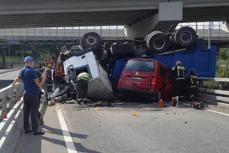 Водитель самосвала, раздавивший микроавтобус с семьей на КАД, получил три года колонии