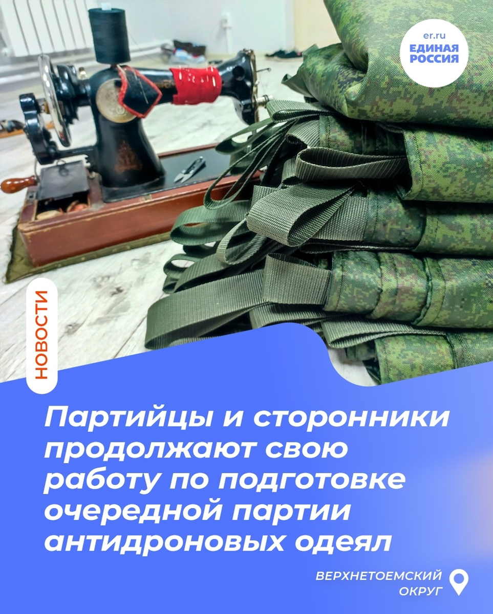 💪 Верхнетоемское отделение «Единой России» шьет антидроновые одеяла для наших бойцов!