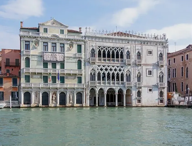 Ка-д’Оро (Cà d’Oro, что означает «Золотой дом») — один из самых изысканных дворцов Венеции, расположенный на Гранд-канале в районе Каннареджо. Этот архитектурный шедевр был построен в 1421–1443 годах для патрицианской семьи Контарини. Готико-венецианский стиль дворца является ярким примером венецианской архитектуры эпохи Возрождения. Фасад здания украшен: Золотыми мозаиками, белом мрамором, изысканной резьбой и готическими элементами. Уникальные черты дворца включают в себя асимметричную композицию и богато декорированные арки, витражные окна и элегантные балконы. Дворец был создан архитекторами Джованни и Бартоломео Бон, которые сумели гармонично соединить готические традиции с византийскими и арабскими элементами. После семьи Контарини дворец сменил нескольких владельцев. В 1894 году здание приобрел граф Гульельмо Лионе-Дельфино, который превратил его в музей. Граф Гульельмо Лионе-Дельфино принадлежал к знатному итальянскому роду, имевшему значительное влияние в культурной и обществе