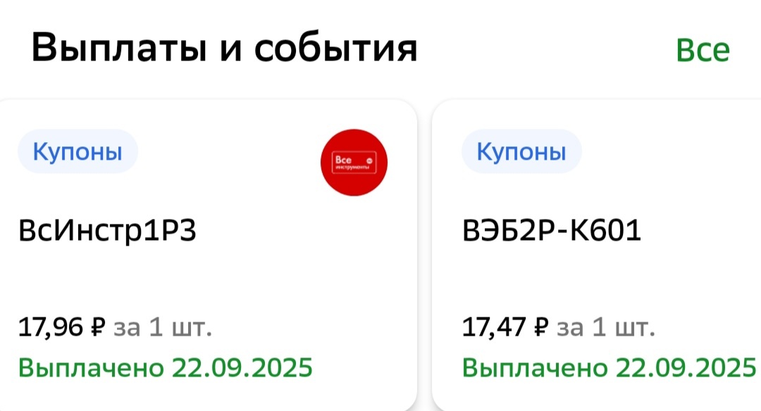 Как же приятно получать уведомления о выплатах) +17.96 от Все инструменты +17.47 от Дом рф Казалось бы, мелочь, но это мои первые купоны по облигациям, так что я в восторге и у меня ощущение, будто получила миллион 😀 мурр мяу! _______ Дивы за 2024 / дивы и купоны за 2025 г: 25 968 р / 13 969 р Присоединяйтесь ко мне в телеграме, там больше жизни)
