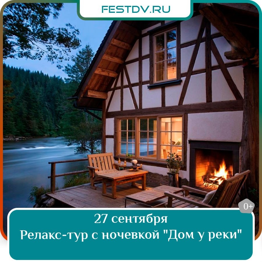 Отдых на природе с баней, чаном и прогулкой по Сикачи-Аляну — тур «Дом у реки» в Хабаровске Дата и время: суббота 27 сентября, 09:00 Место проведения: г. Хабаровск, ул. Карла Маркса 58 Стоимость: 9000₽ Телефон для справок: +7 966… #фестивалим #хабаровск #вхабаровске #отдыхдв #отдых #фестиваль Подробнее: https://festdv.ru/meropriyatiya/kalendar-sobytij/27-sentyabrya-relaks-tur-s-nochevkoj-dom-u-reki-v-habarovske/
