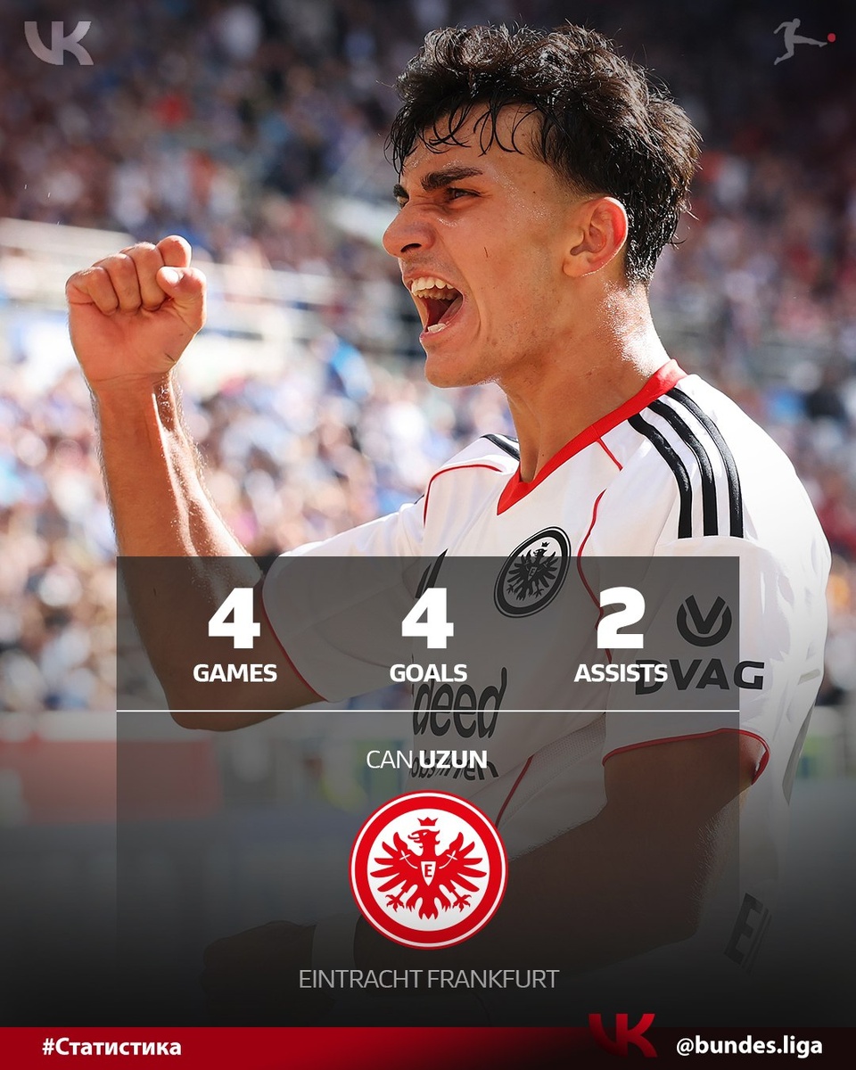 #Бундеслига 😎 Джан Узун - турецкий футболист, атакующий полузащитник клуба «Айнтрахт Франкфурт» и сборной Турции забивает в каждом матче
