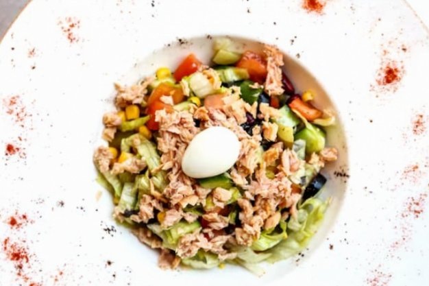 Откройте для себя тунисский салат «Мешуя» — полезное и вкусное блюдо из запеченных овощей. Погрузитесь в гастрономическое наслаждение! Представляем вашему вниманию один из самых популярных рецептов тунисской кухни — салат «Мешуя». Благодаря богатому вкусу и ярким цветам, это блюдо часто становится главной звездой на столе. Обратите внимание, что соотношение и состав продуктов могут быть изменены в зависимости от ваших предпочтений. Кулинары регулярно добавляют разнообразные специи для повышения вкусовых качеств. Это не только красивое, но и полезное блюдо, насыщенное витаминами и антиоксидантами, что делает его идеальным выбором для тех, кто заботится о своем здоровье. Рекомендуется подавать его как гарнир к мясным и рыбным блюдам, а также наслаждаться им как самостоятельным обедом или ужином. Ингредиенты: болгарский перец — 3 шт.; крупные помидоры — 3 шт.; яйца — 3 шт.; чеснок — 3 зубчика; острый перец — 1 шт.; репчатый лук — 1 шт.; тунец в собственном соку — 1 банка; оливковое масло