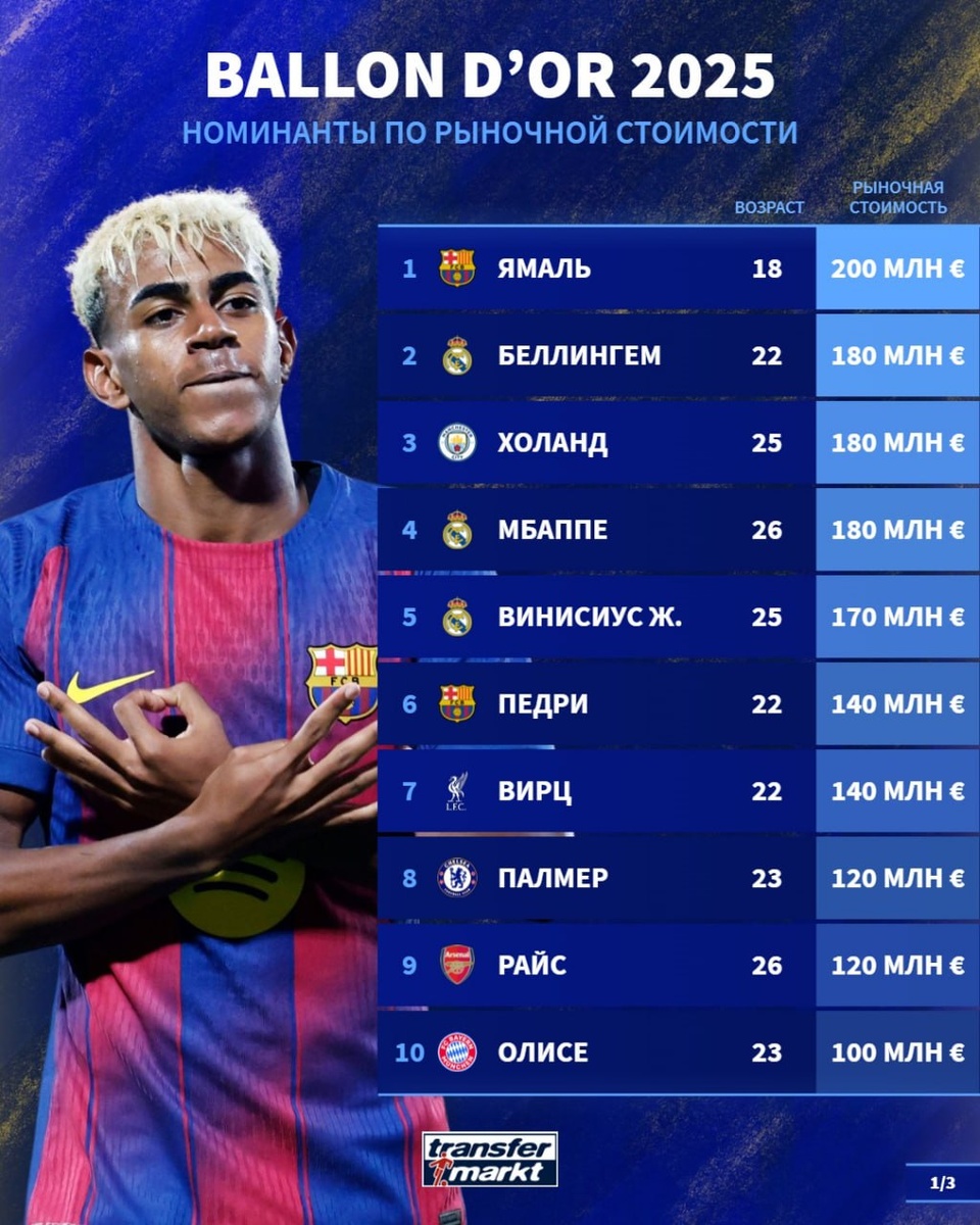 💸Номинанты “Золотого мяча” 2025 года по рыночной стоимости