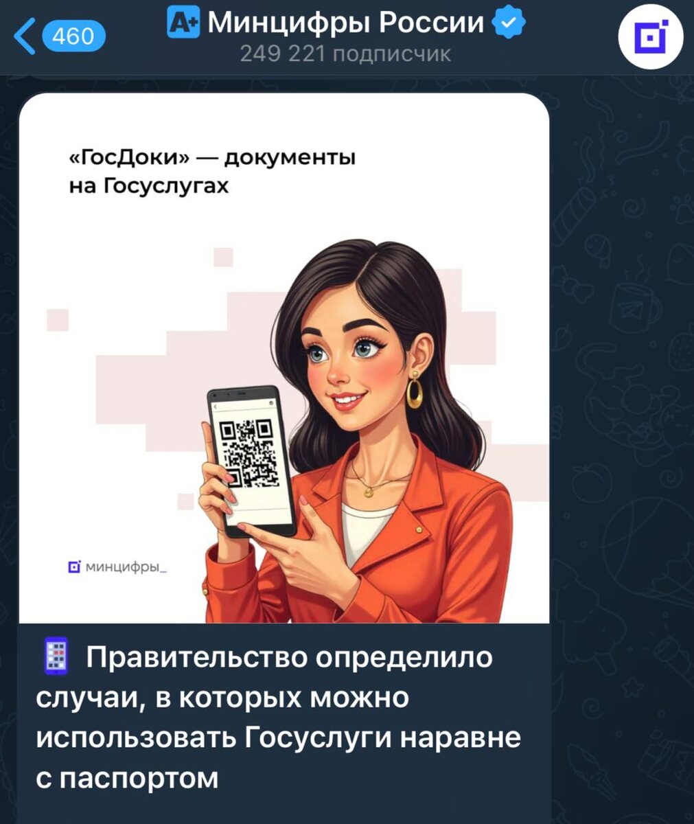 Минцифры России запускает на «Госуслугах» функцию генерации QR-кода, который будет полноценной заменой бумажному паспорту. ⚡️ Что это значит? Больше не нужно носить с собой главный документ и переживать о его потере. Сгенерированный код можно будет предъявлять везде, где требуют паспорт. 📍Главное: ➖ Это добровольно — бумажный паспорт по-прежнему действует без ограничений. ➖ QR-код будет создаваться в сервисе «ГосДоки». ➖ Проверяющие увидят только нужные данные (например, только возраст и фото), а не всю информацию из паспорта. Официальный анонс от министерства — по ссылке . Будущее наступает! #Госуслуги #Минцифры #QRкод #цифровизация #паспорт #Правительство Подпишись на PROTECH