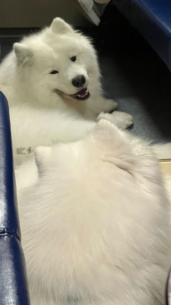 Путешествие с собакой на поезде💥🙈 Айкен с хозяевами @naumovaakatya уже второй раз едет в поезде по маршруту Калининград - Воронеж. В поездке, естественно, ему будут предложены и напитки, и еда, и прогулки на станциях. Уже появились первые фанаты собаки, хотя поезд ещё и не тронулся. Что нужно для такого турне? 👇 1. Вет паспорт со своевременной вакцинацией 2. При приобретении билетов обратите внимание, можно ли с животными в этот вагон. 3. Если пёс крупный, Вам необходимо выкупить все свободные места (поэтому у Айкена своя полка, и он может смотреть в окно 😃). Пожелаем Кате, Рустаму и Айкену отличных каникул и будем ждать их репортажи, у самоеда будут насыщенные событиями дни. 💥