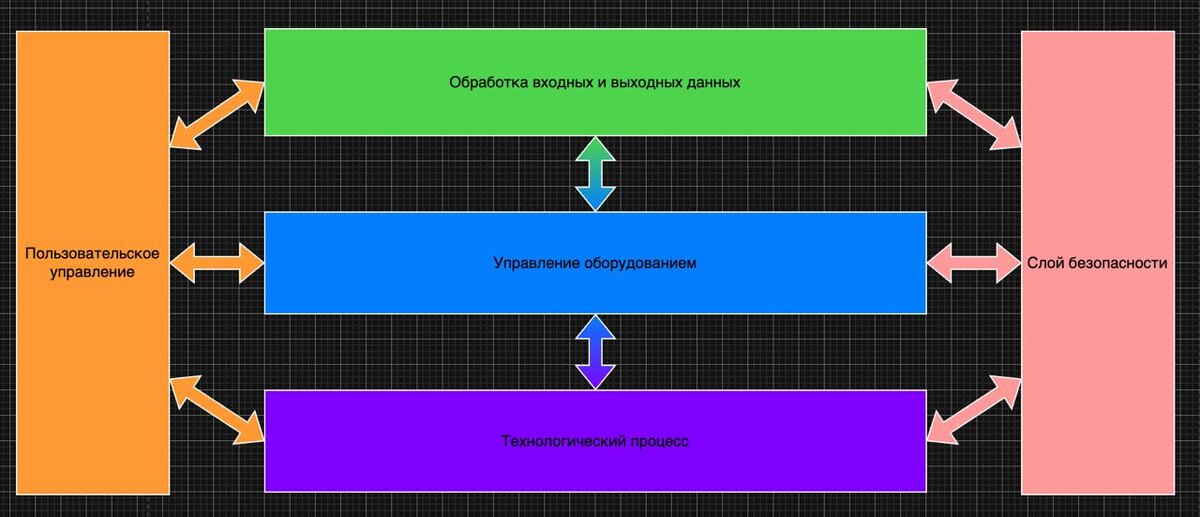 Иногда лучше не слушать подкасты, так как они заставляют вернутся к тому, что не доделал. Возвращаюсь к архитектуре ППО. Целью всех этих изысканий будет лишь формирование правил и подходов, как минимум для себя, для быстрого написания кода, его организации, масштабирования, отладки и сопровождения. Для себя я хочу точно выделить логические слои и разграничить зоны ответственности между ними, сформировать правила взаимодействия и найти какие-то общие паттерны для упрощения стандартных решений. Рассматривать все это будут с точки зрения классического подхода, без использования ООП. В таком нелегком деле буду рад пообщаться по теме вопроса. Сейчас для себя я выделил 5 основных логических слоев ППО. Слой входных/выходных данных, слой оборудования, слой технологического процесса и два слоя, которые взаимодействуют со всеми - слой пользовательского управления и слой безопасности. По моим умозаключениям все фб внутри одного логического слоя могут напрямую взаимодействовать друг с другом, но п