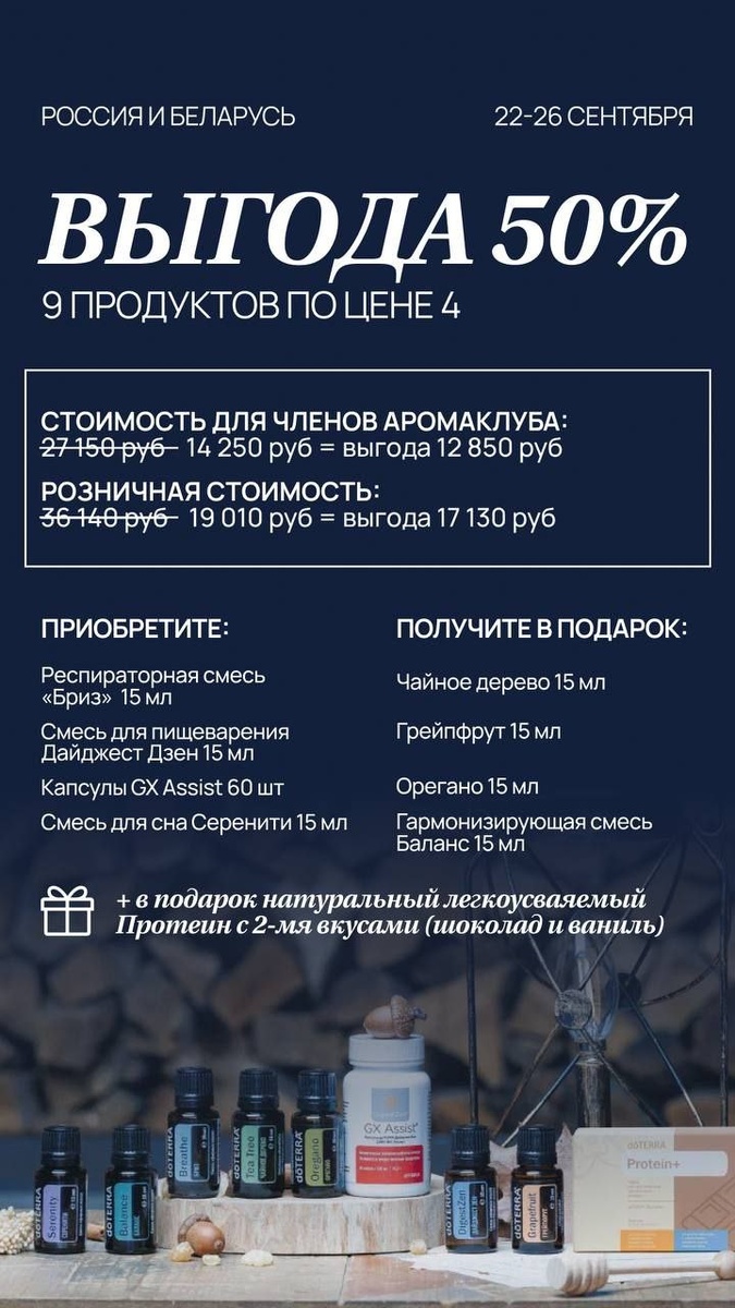 🌿 Информация об остатках по BOGO 💥 BOGO-набор + Protein+ микс в подарок 60232663/60232664 - продано 60% 💥 Купи Бриз, 15 мл 60204746 - получи Чайное дерево, 15 мл 60212411 – продано 45% 💥 Купи Дайджест Зен, 15 мл 60214445 - получи Грейпфрут, 15 мл 60204740 - продано 12% 💥 Купи Серенити, 15 мл 60220784 - получи Баланс, 15 мл 60204747 - продано 13% 💥 Купи GX Assist (60 капсул) 60212024 - получи Орегано, 15 мл 60204771 - продано 10% Всем удачного BOGO 💥 🎁✨