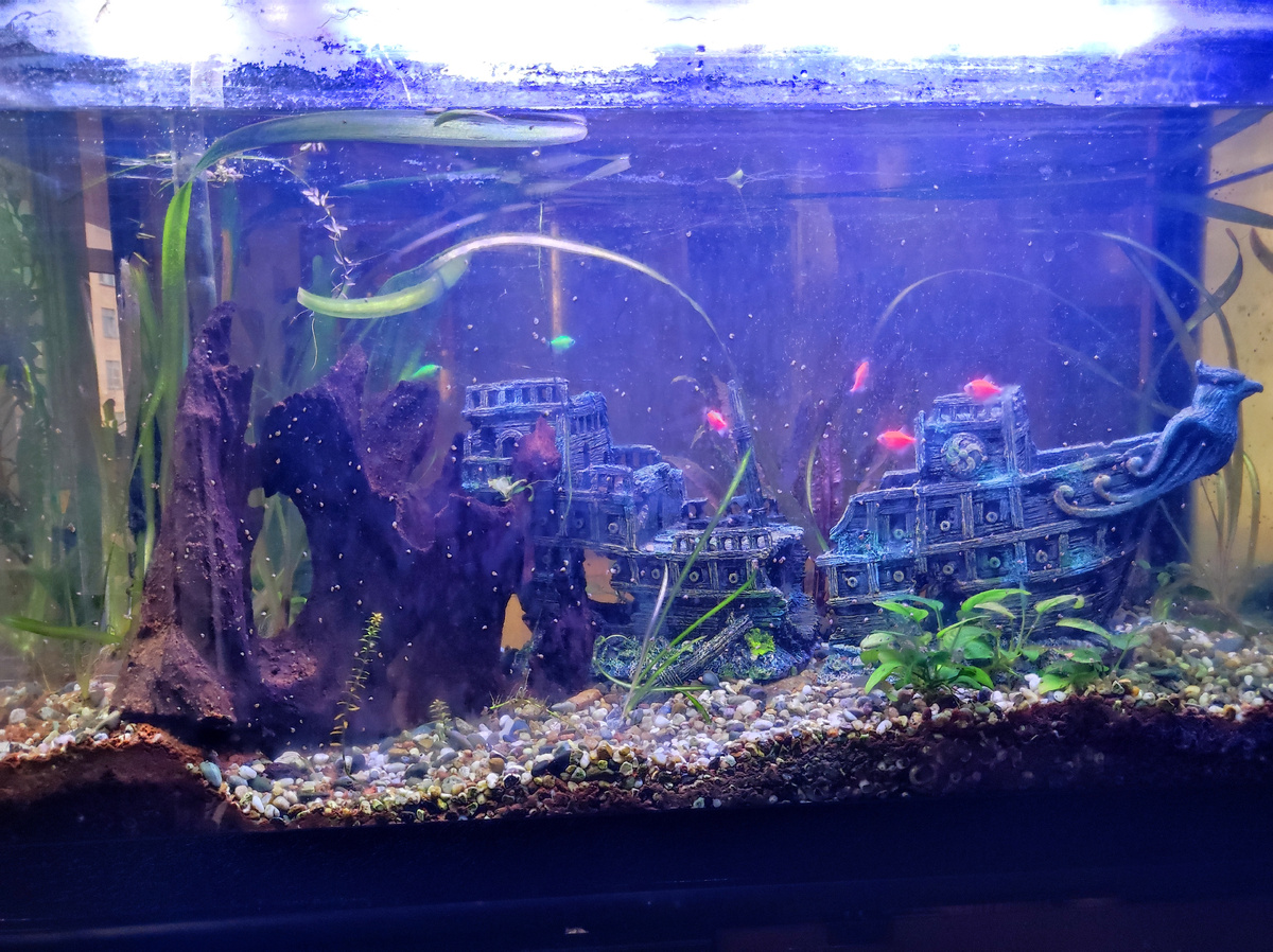 Когда-то у меня для вдохновения был кенар - птичка певчая. Он выводил заливистые трели у меня над головой, посыпая шелухой от семян, а снизу я строчила приключения Ваньки и Насти в Майнкрафте. Кенар простудился на даче и погиб. Теперь у меня есть аквариум. Он двусторонний - вдохновляет меня на кухне, когда я готовлю, и в гостиной, когда я пишу или делаю зарядку около него на коврике. Целый год я собиралась с духом, чтобы завести рыбок. Коллега дала мне растения и они потихоньку прижились. Вместе с растениями в аквариум проникла улитка. С ней можно познакомиться на видео ниже. Улитка бешено расплодилась и отлично почистила стенки аквариума. Полгода я любовалась на улиток и мечтала о рыбках. Моя мечта сбылась в последний день бабьего лета - я добралась до аква-магазина на Сальвадора Альенде. Рыбок там можно найти по "следам", которые ведут на цокольный этаж. А там у меня глаза разбежались! Почти как в океанариуме! Так забавно и мило смотрелись растения в мини-горшочках, стоящие в воде