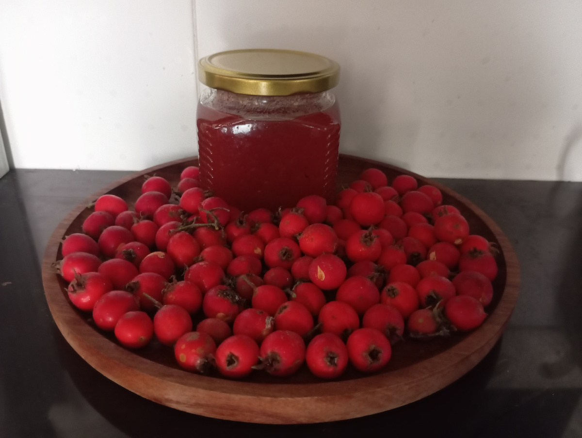 Джем из боярышника в этом году сделала впервые. До этого ягоды боярышника только сушила и в виде джема-варенья-компота ни разу не пробовала. Поэтому на пробу приготовила немного, а попробовав, поняла, нужно делать еще!))) Правда вторую партию сделала менее сладкой. Первую партию я делала в пропорции 1:1:1. То есть, на 1 кг ягод боярышника добавила 1 кг сахара и 1 литр воды. Получилось сладко, во всяком случае, для меня. А мужу очень даже понравилось. Так что, если вы не очень любитель сладкого, то сахара можно добавить и 800 г на 1 кг ягод. Итак, ягоды боярышника помыть и почистить от "хвостиков". Выложить ягоды в кастрюлю, добавить воду и поставить на огонь. Как закипит, убавить огонь и оставить вариться на 30-40 минут. За это время ягоды станут мягкими, а вода немного выкипит. Пока ягоды будут кипеть, нужно периодически снимать пенку. Спустя полчаса ягоды выложить на сито. Дать немного остыть. Воду не выливайте, она нам понадобится. Ягоды перетереть через сито. Сразу скажу, дело это
