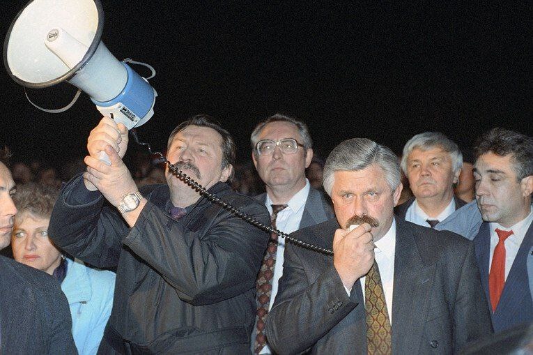 Совсем ведь недавно... 22 сентября 1993 года Верховный совет низлагает Ельцина с поста Президента России. Вице-президент Руцкой приносит президентскую присягу перед Белым домом. Начинается формирование ополчения перед Белым домом. Из обращения Руцкого: я, Вице-президент Российской Федерации Руцкой Александр Владимирович, данным мне правом на основании Конституции Российской Федерации и решением Президиума Верховного Совета Российской Федерации заявляю о том, что с 00.25 часов 22 сентября 1993 года приступаю к исполнению обязанностей Президента Российской Федерации. Мной подписаны соответствующие указы. В связи с этим я отменяю антиконституционный и противозаконный указ № 1400 от 21.09.93 г., на основании которого совершен государственный переворот. Дальше - расстрел Белого дома.
