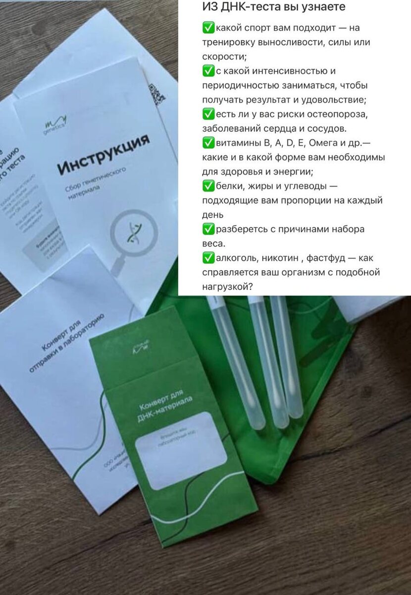 Решила решительно прокачаться в теме здоровья и сделать ДНК-тест от Mygenetics, потому что вечные качели с весом меня уже достали. Решила воспользоваться чит-кодом и узнать изнутри подсказки о своем организме через генетику, которая сама показывает очень важные факты об организме. И будет включена консультация врача по итогам результата ДНК-теста , который мне всё подробно расшифрует 🧬 Всего лишь надо было собрать слюну (какой-то жалкий детский уровень). Я свою сдала, завтра материал уедет в лабораторию и теперь с нетерпением жду своего результата! Обязательно с вами поделюсь! Если вы уже думали сделать этот тест (я выложила в сторис, оказалось, что очень популярно, даже синхронизировалась с клиенткой), то можете воспользоваться моим промокодом BADANINA, который дает скидку 5% - mygenetics 💚