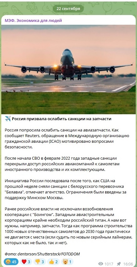 Санкции попросили они смягчить. Хрен вам гнидам рукожопным. Своё надо начинать производить. СССР научился всё сам. А вам что мешает? Я знаю - Опарыши импортодрочеры в том числе и в авиации. Кто вас заставлял покупать Боинги? И откуда должно появиться свои самолёты, если вы покупаете импортное дерьмо, ещё и бу. ================================ Министерство торговли США запретило авиакомпании "Белавиа" использовать самолёты Boeing для полётов в Россию. ================================== А на что надеялись в Беларусии? Кстати олухи из РФ на что вы надеетесь?
