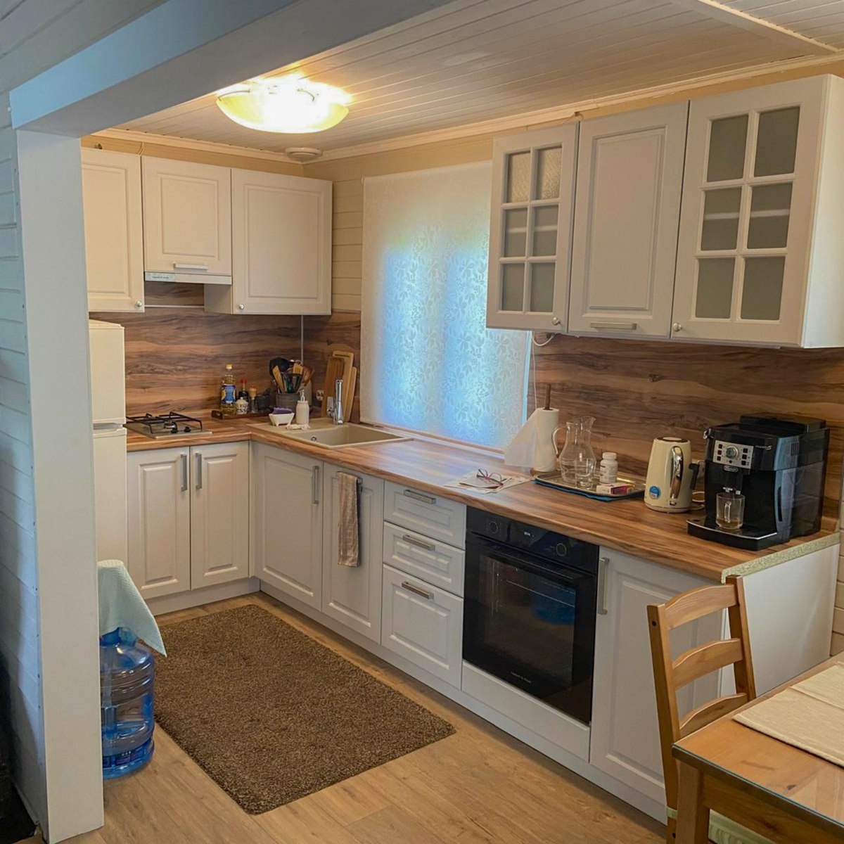 🏡 История одного уютного дома Когда смотришь на эту кухню, невольно представляешь, как утром здесь пахнет свежесваренным кофе, а за столом собирается семья. Белые фасады наполняют пространство светом, а тёплый рисунок дерева на столешнице и стене создаёт атмосферу уюта и спокойствия. Хозяева рассказывают, что им было важно совместить красоту и практичность: чтобы всё необходимое было под рукой, а кухня оставалась просторной и удобной. Так и получилось — рабочая зона расположена у окна, шкафы вмещают всё нужное, а современная техника помогает экономить время. 📖 Каждая деталь здесь напоминает о заботе и внимании — от стеклянных вставок на верхних фасадах до мягкого коврика у мойки. Это место не только для готовки, но и для маленьких радостей: утренних разговоров, семейных ужинов и тихих вечеров с чашкой чая. Именно такие кухни становятся сердцем дома.